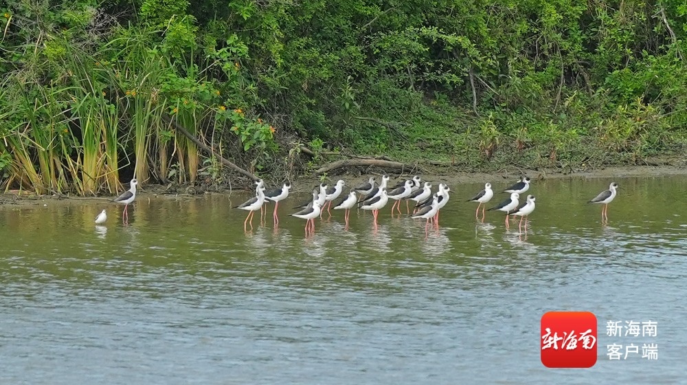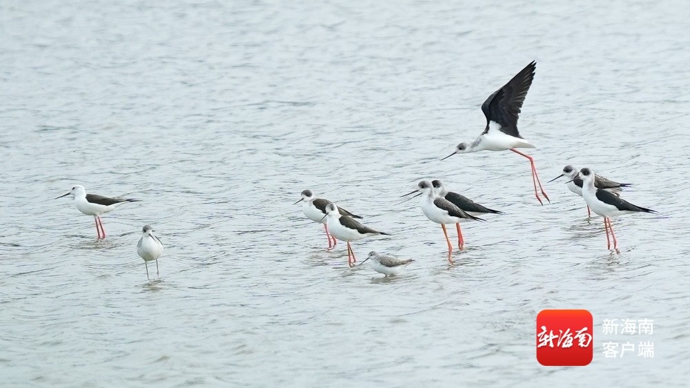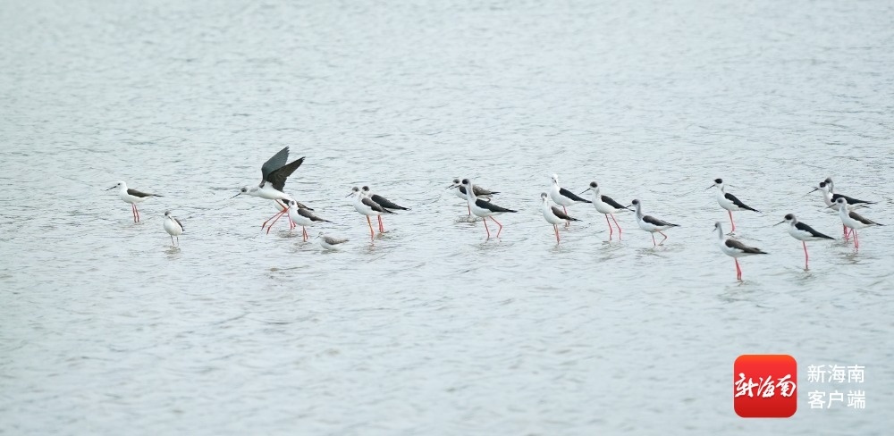 11月20日,落户海口富屋村湿地的黑翅长脚鹬种群迎来了“邻居”,青脚鹬也把这里当成了新的家园,为湿地增添了生机。两种鹬类同域出现,也成为当地一道靓丽的生态风景线。