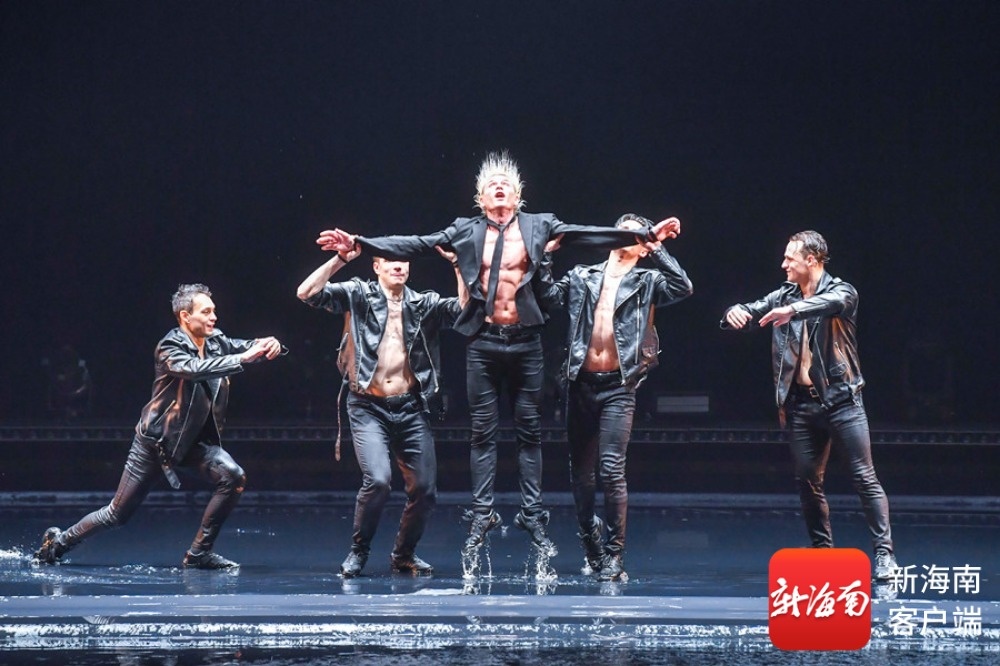 俄罗斯型男水舞剧《雨中》在海口震撼上演。记者陈望摄