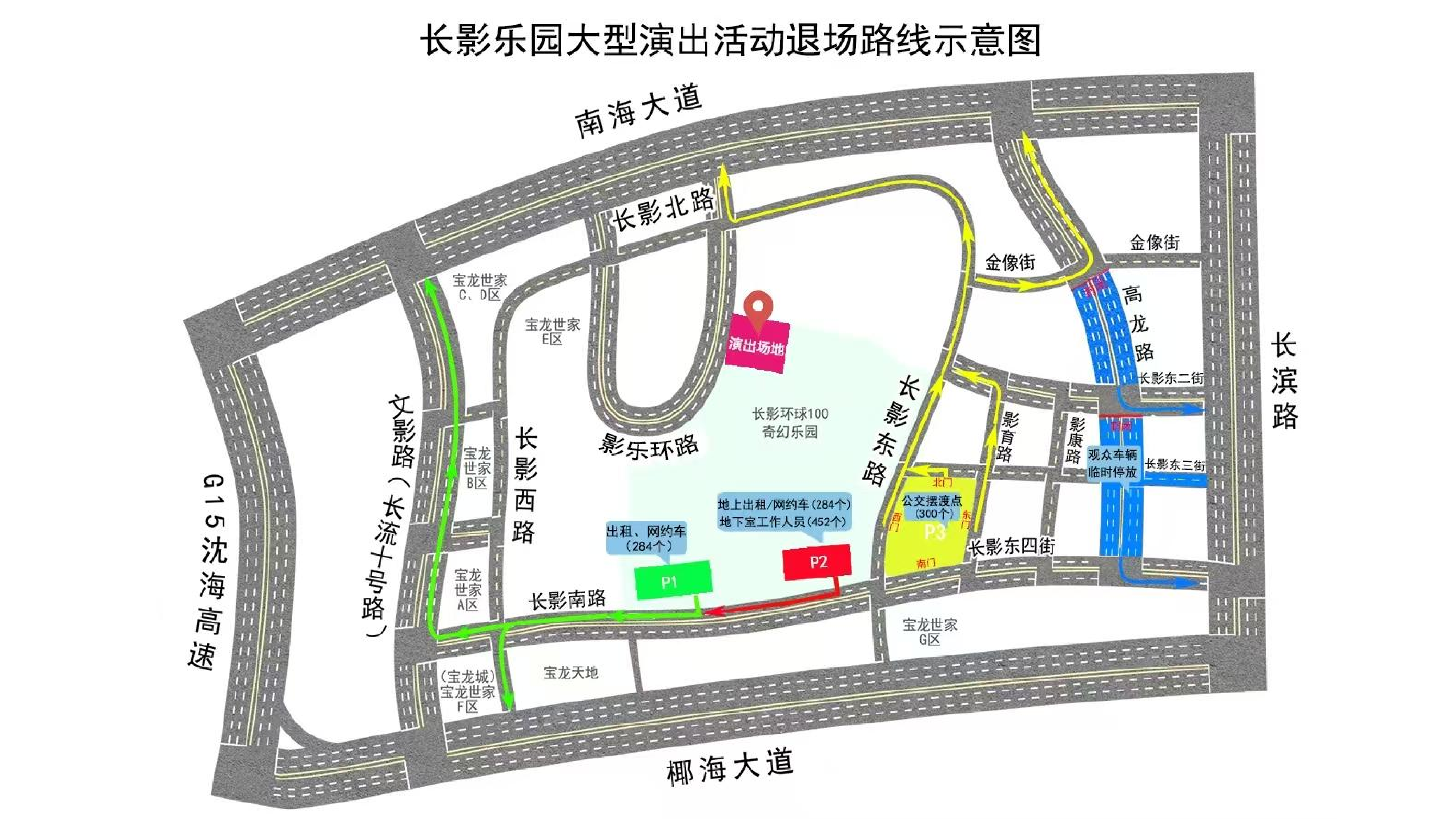 海口公交提醒观演群众,演出活动结束后所有免费公交专线车将原路返回,请留意以防误乘。因海南长影奇幻乐园周边网约车、出租车数量有限,难以保障快速疏散,建议观演群众优先选择乘坐公交车到达市区,再换乘出租车或网约车至目的地。如有咨询和物品遗落,可拨打12345服务热线或公交客服热线66663066。