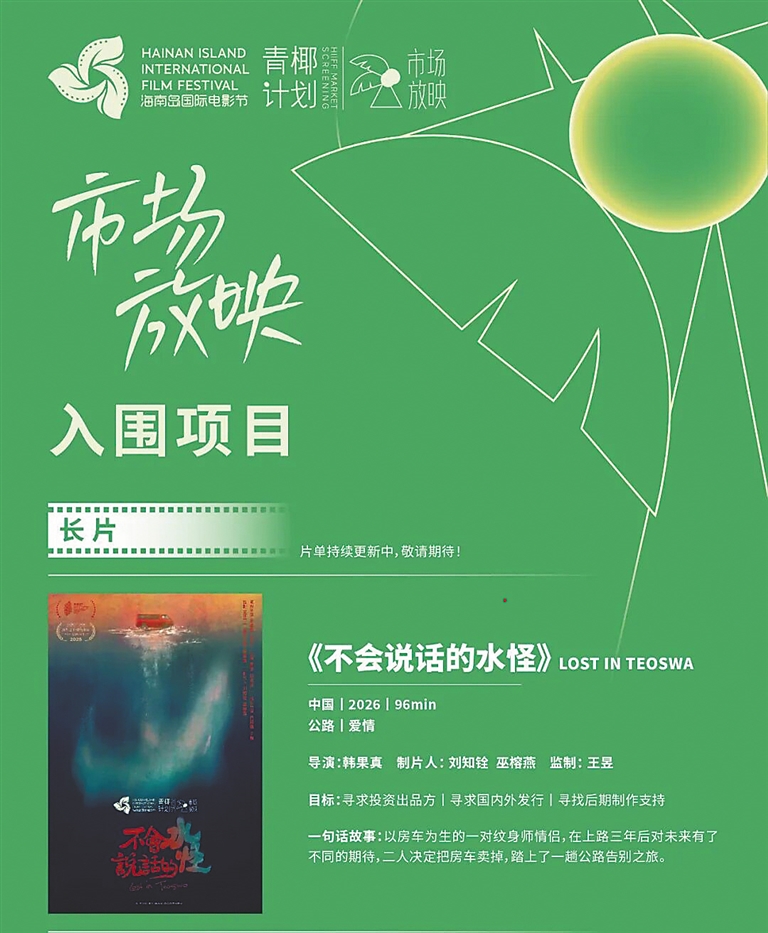 近日,第七届海南岛国际电影节“青椰计划”正式公布市场放映单元入围项目名单。本届“青椰计划”设立“市场放映”板块,旨在搭建连接海内外电影产业的枢纽平台,积极推动国内外优质影片与创作项目“走出去”与“引进来”,促进电影资源的国际流动与合作。