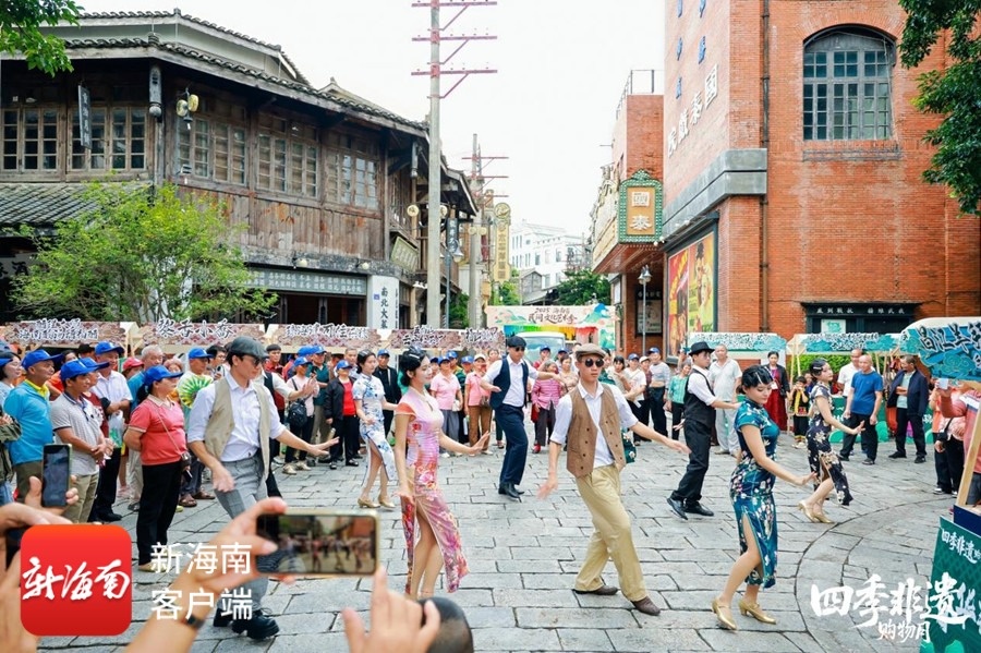 艺术季的开篇重头戏“四季非遗购物月”,于11月初在海口观澜湖华谊冯小刚电影公社的芳华景区浪漫开场。这里被打造成一个巨大的沉浸式剧场:游客手持集章手册,步入以“春华、夏韵、秋实、冬藏”命名的主题展区,仿佛在一天之内领略海南的四季轮回。