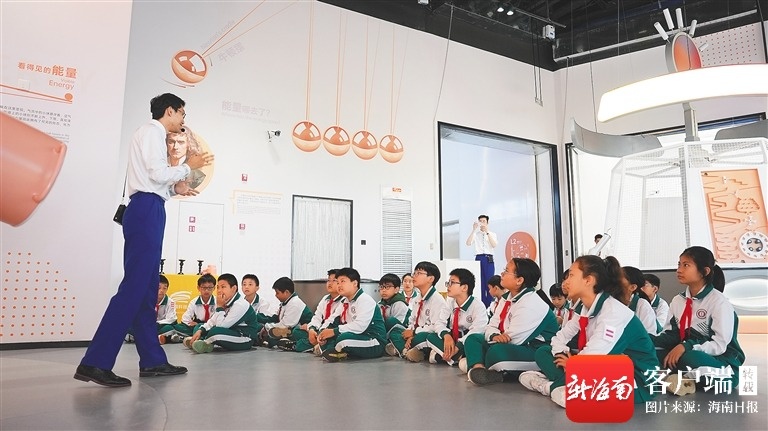 海南科技馆工作人员为学生科普讲解。海南日报全媒体记者邱江华摄
