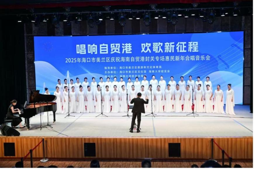 近日,“唱响自贸港,欢歌新征程”——海口市美兰区专场惠民新年合唱音乐会在美兰区文化馆音乐厅成功举行。音乐会现场汇聚了近500名观众,包括社区工作者、志愿者代表以及自发前来的市民。大家齐聚一堂,在歌声中迎接2026年的到来。