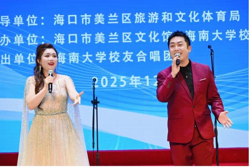 本次音乐会由海口市美兰区旅游和文化体育局指导,海口市美兰区文化馆与海南大学校友会联合主办,海南大学校友合唱团倾情演出。(王聘钊)
