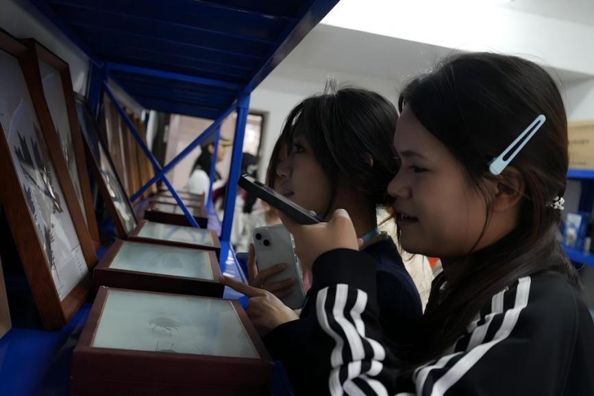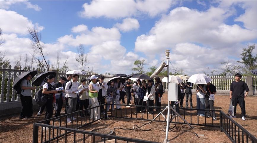 在海南文昌森林生态系统定位观测研究站,同学们解锁了生态监测的“科技密码”—工作人员详细介绍了综合观测塔、激光雨滴谱仪等专业设备的工作原理,讲解其在森林生态监测中的基础性作用。现场展示的珍稀动植物标本、木材及种子样本,让大家得以近距离触摸生物多样性的魅力。而人气颇高的叶脉书签制作与植物拓印等手工环节,让同学们在亲手创作中直观感受植物脉络的精巧与生命张力,将自然之美定格为随身记忆。