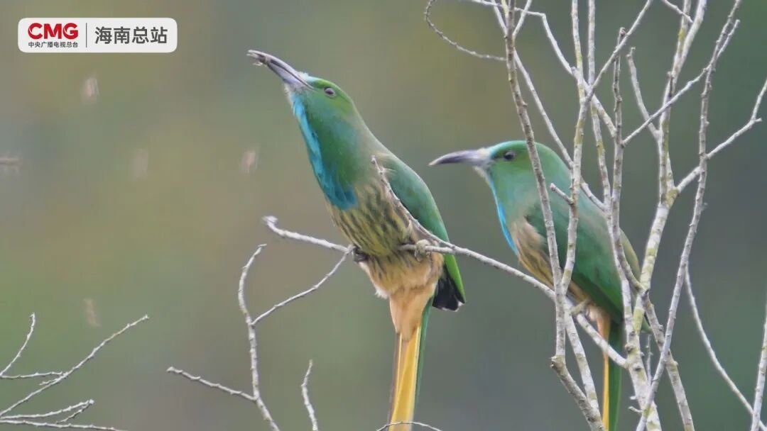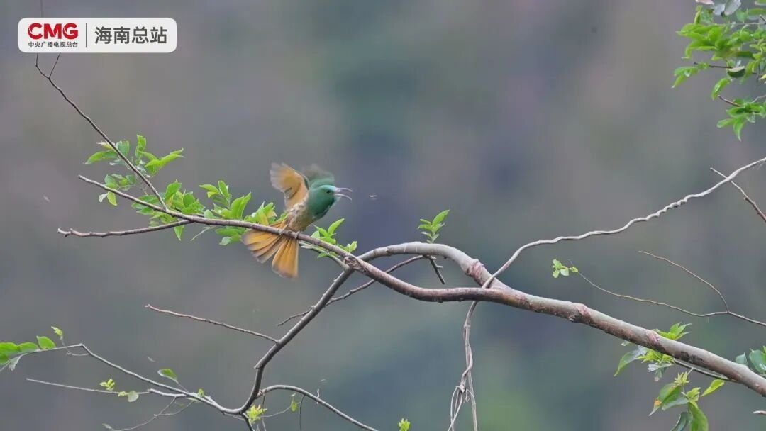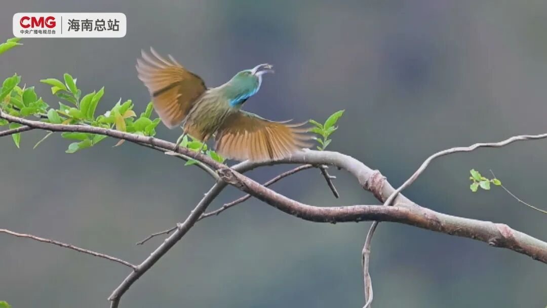 近日,总台记者在海南热带雨林国家公园五指山片区,拍摄到多只蓝须蜂虎捕食蜜蜂的精彩画面。