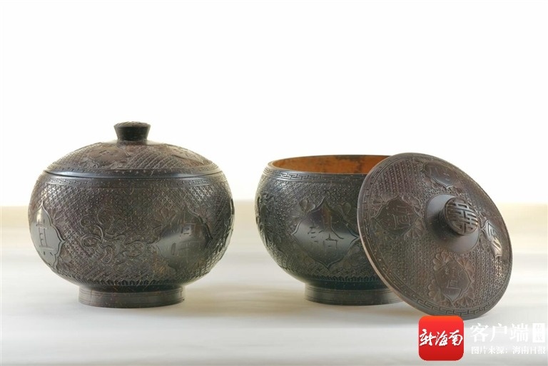 海南椰雕名家吴名驹制作的结婚喜盒。王益友供图
