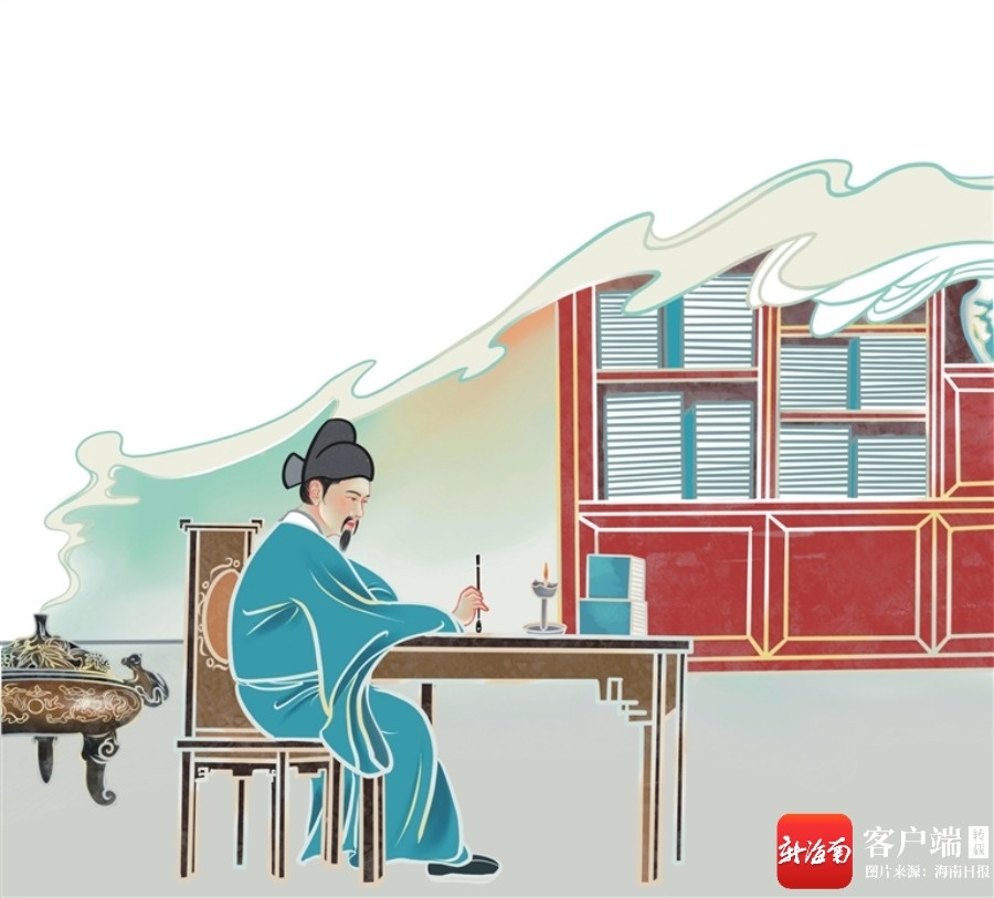 《丘濬著书图》。手绘/杨千懿