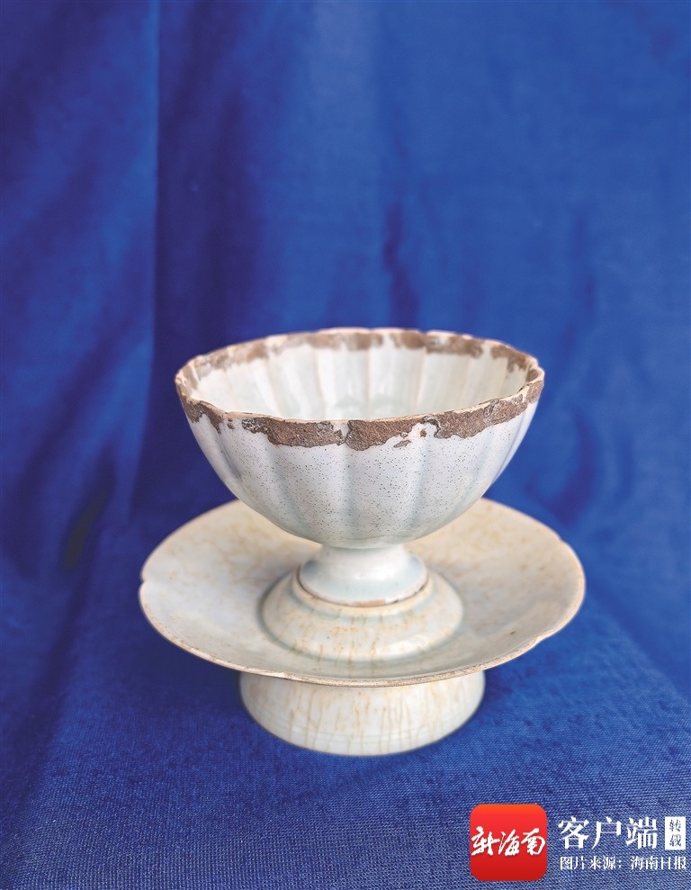 南宋重层菊瓣高足扣银盏及(托)。海南民俗博物馆藏