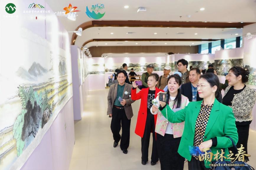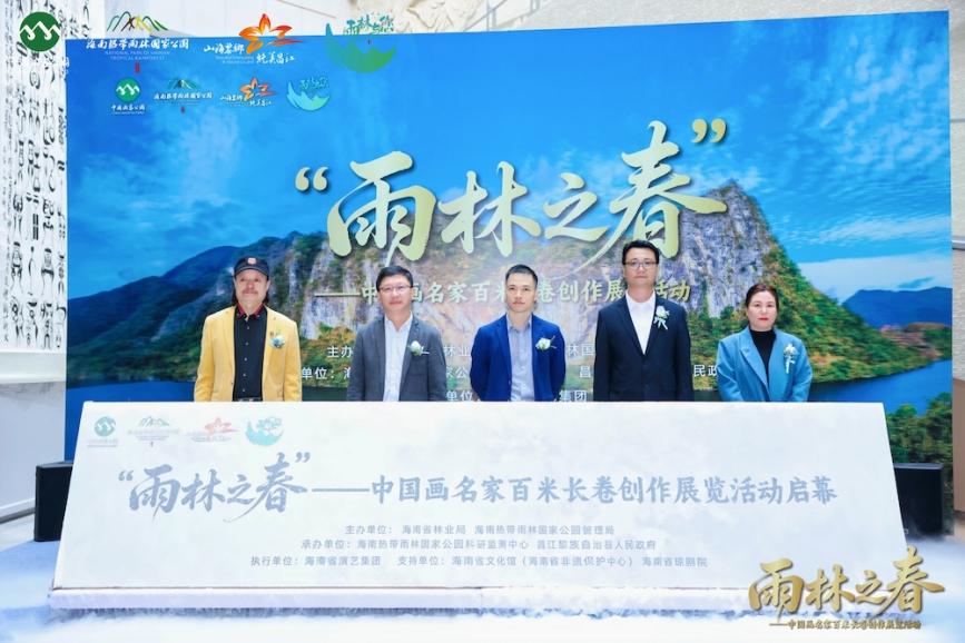 “南溟有岭,郁乎苍苍。春气发而雨林醒,碧落垂而瀑练长。”2月10日上午,在海南省文化馆(海南省非遗展示中心),“雨林之春”——中国画名家百米长卷创作展览活动隆重开幕。本次展览以“向绿图强”为主题,紧扣生态文明建设主线,以海南热带雨林国家公园为创作核心,通过中国画的笔墨意境生动诠释“绿水青山就是金山银山”理念,呈现一幅生态与艺术交融、保护与发展并重的时代画卷。