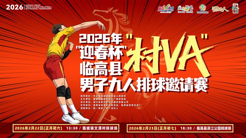 新春临高,村排正燃!2026年“迎春杯”临高县“村VA”九人男子排球邀请赛,无论是赛场拼搏的选手,还是呐喊助威的观众,都是这场新春盛宴的主角,让我们相约临高赛场,在新春的喜悦中,共赴这场全民共享的排球之约,用运动的激情点亮新春,让村VA的热潮温暖整个春天!