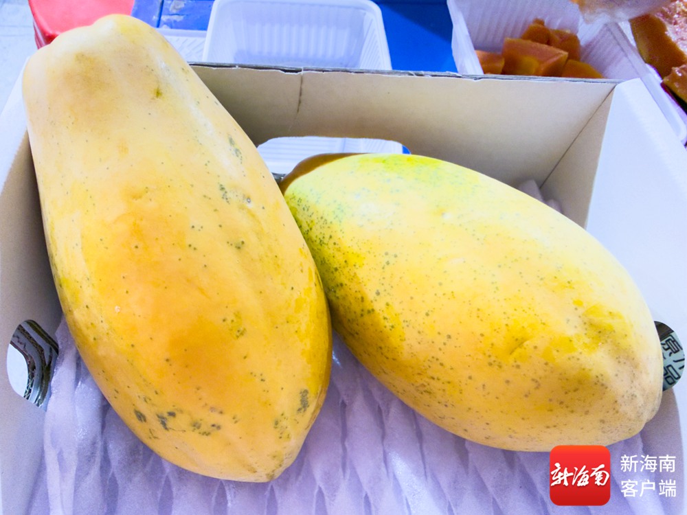 三亚新春年货节现场三亚木瓜展台的木瓜。记者吴兴财摄