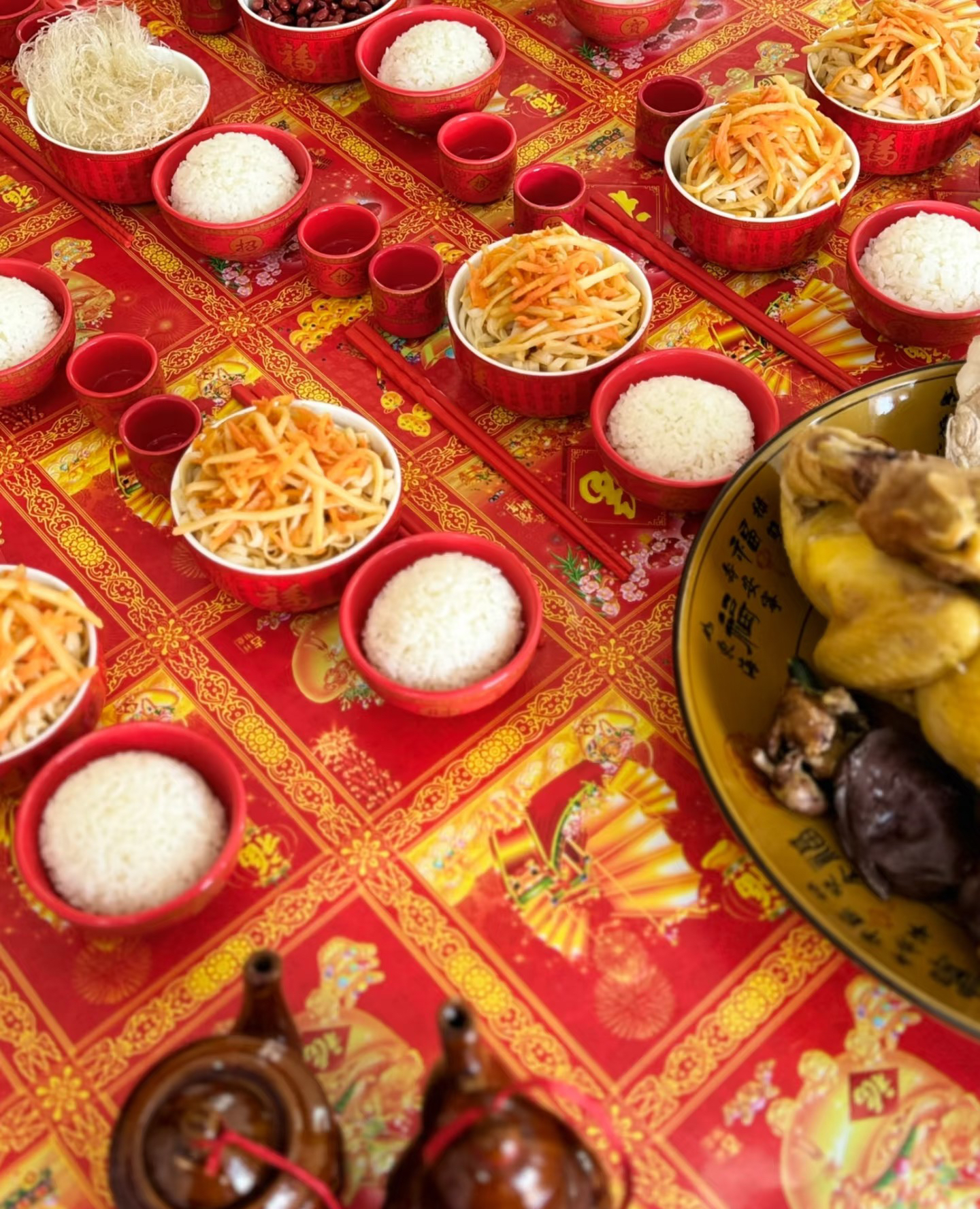 长辈们则买菜做饭、杀鸡宰猪