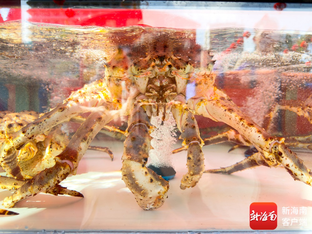 三亚新春年货节现场三亚环农海鲜展台的俄罗斯帝王蟹。记者吴兴财摄