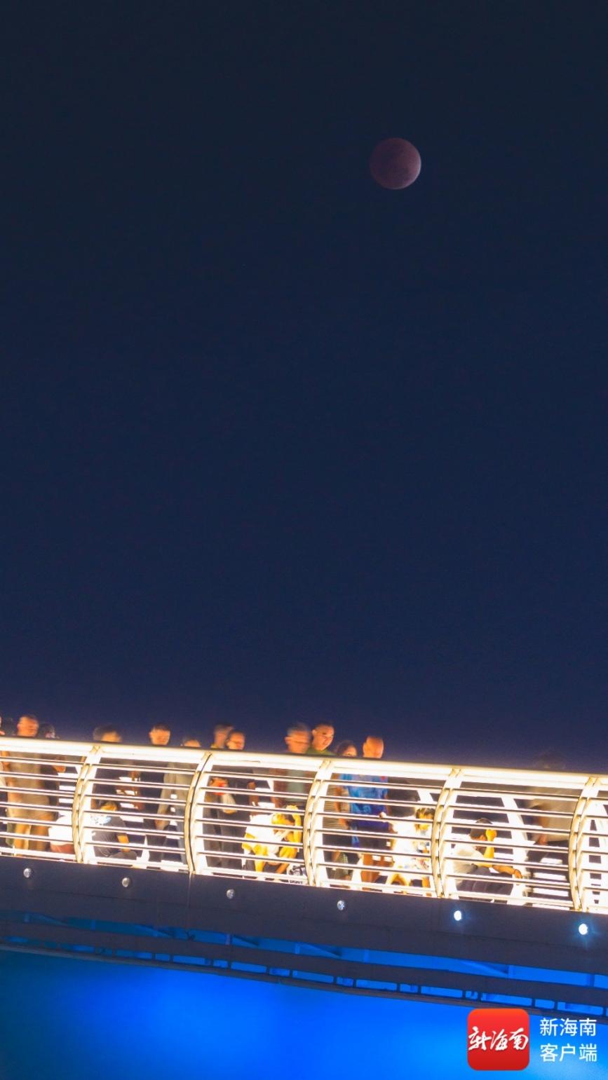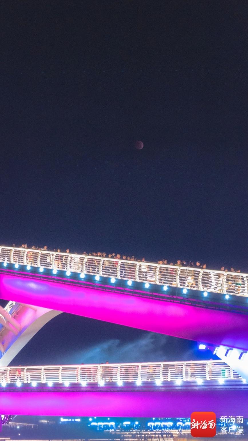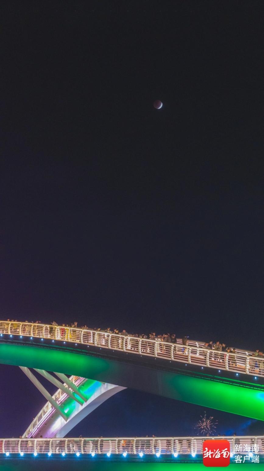 在陵水河畔,暗红色的“红月亮”与知音桥的璀璨灯光、河畔的万家灯火构成了一幅绝美的画卷。市民们纷纷驻足拍照,将这罕见的瞬间定格;游客们一边品尝着元宵,一边欣赏着天幕奇景,直呼“不虚此行”。“活了几十年,还是第一次在元宵节看到红月亮,太有意义了!”家住陵水的市民王先生激动地说。