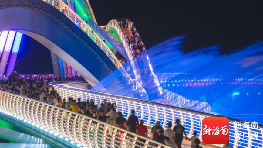 市民游客在陵水知音桥上赏月。记者刘孙谋摄