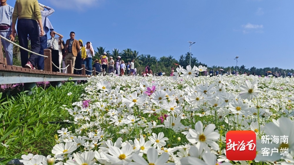 走在博鳌镇南强村的数十亩花海木质观光道上,田野里大片的格桑花、马鞭草迎风摇曳,空气中弥漫着花的芬芳。蝴蝶在花中飞舞,处处彰显自然的幽静与和谐。