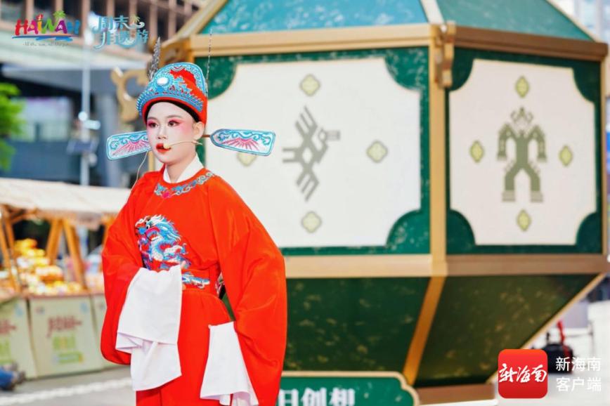 文艺展演舞台上,传统底蕴与青春朝气双向奔赴。海南省琼剧院专业演员带来冼夫人折子戏《严慈吟》,水袖翻飞、唱腔婉转,尽显戏曲功底;少儿琼剧小演员身着戏服从容亮相,稚嫩嗓音字正腔圆,让古老剧种焕发童真活力;黎族传统《打柴舞》节奏明快,舞者邀请观众同台互动,男女老少携手穿梭竹竿阵,欢声笑语回荡在市集现场,掌声、叫好声接连不断。