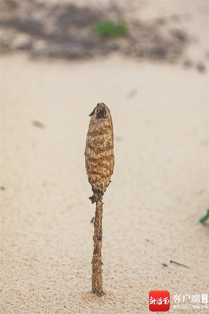 同样的奇遇在四个月后再次发生。同年5月的某一天,海南昌江海尾国家湿地公园管理中心副主任薛美丽在昌江黎族自治县一处沙滩上拍鸟。阳光炙烤着沙滩,脚下的沙子烫得几乎站不住人。她不经意低头的一瞬间,也看见了这种真菌。