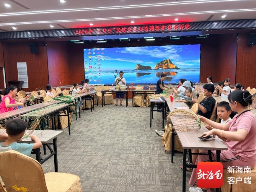 陵水城乡规划展览馆开展传统竹藤编织体验活动。陵水城乡规划展览馆供图
