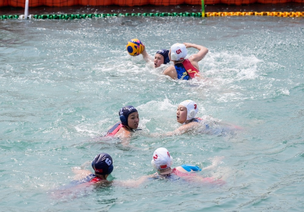 4月22日上午,第六届亚洲沙滩运动会(以下简称:三亚亚沙会)女子水球项目在海月广场竞赛场馆正式开赛。中国队、中国香港队、泰国队与哈萨克斯坦队同场竞技,逐浪对决。中国队以3-1战胜中国香港队,取得开门红。
