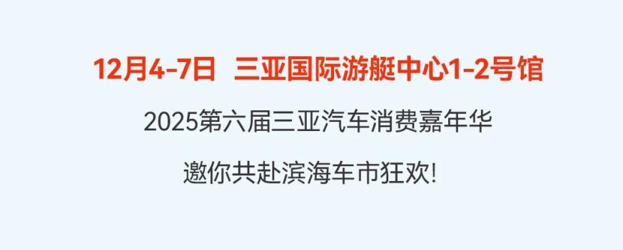 2025第六届三亚汽车消费嘉年华定档12月4日-7日