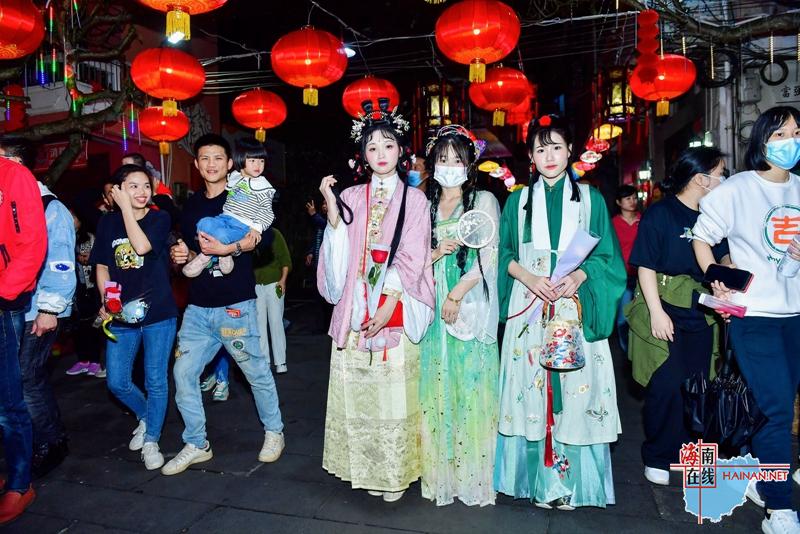 今年元宵节当天,琼山区大街小巷都洋溢着浓浓的节日氛围。府城当地老百姓自发组织了盛大的传统民俗活动。受到活动气氛的感染,来自全国各地的市民游客兴致勃勃地来到府城赏花灯、看民俗。