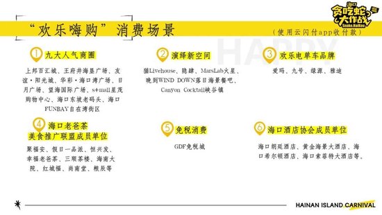 “欢乐嗨购”作为欢乐节的首发重磅活动,联动六大消费场景,涵盖“吃、住、行、游、购、娱”全产业链条。通过“贪吃蛇大作战”H5发放十万份奖品和高达千万元的奖池福利,为游客和市民带来“消费赚币·福利翻倍”的狂欢体验!
