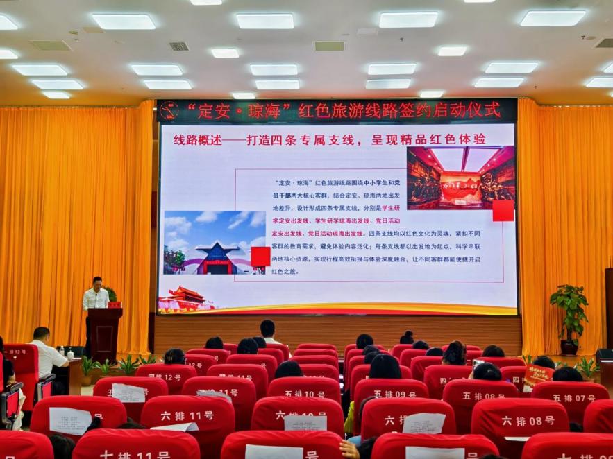 随后的启动仪式将现场气氛推向高潮。在倒计时声中,象征着合作正式启航的启动画面亮起,预示着“定安-琼海”红色旅游线路正式启航。