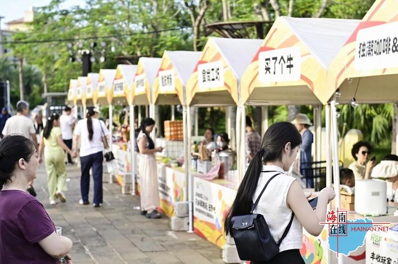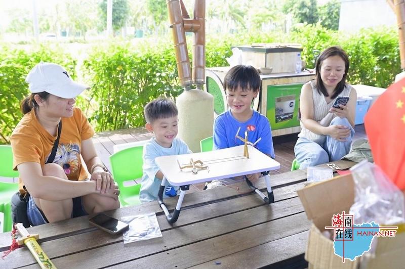 本次活动联动乡愁工坊,六大非遗手作体验——烧蓝簪子、螺钿簪、水拓漆扇、型糊染、竹节人、艾草养生锤吸引众多家庭与年轻游客驻足,成为传播海南本土文化与手工技艺的重要窗口。