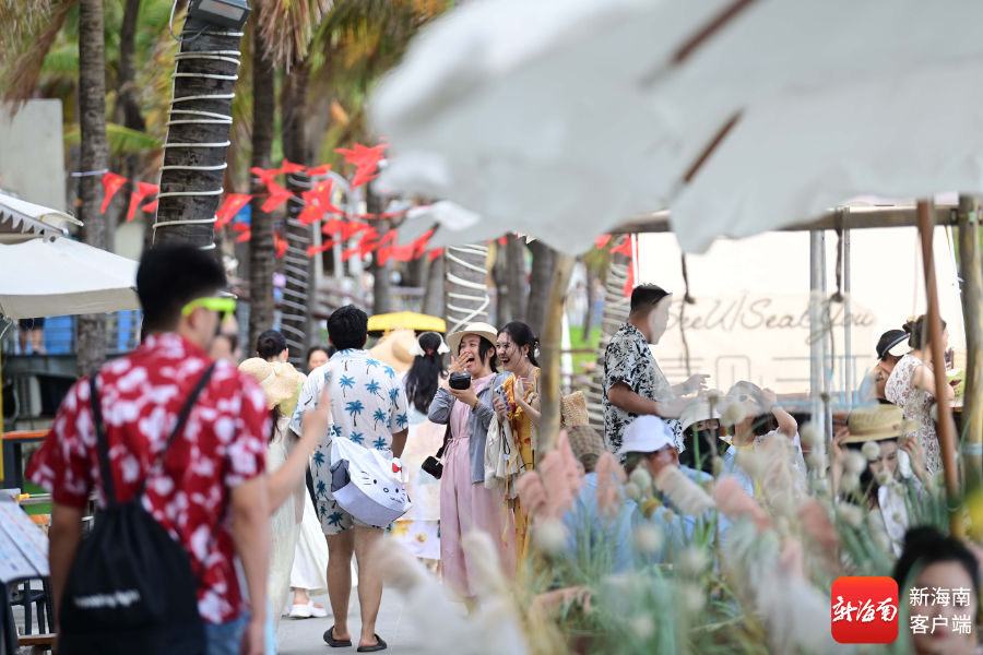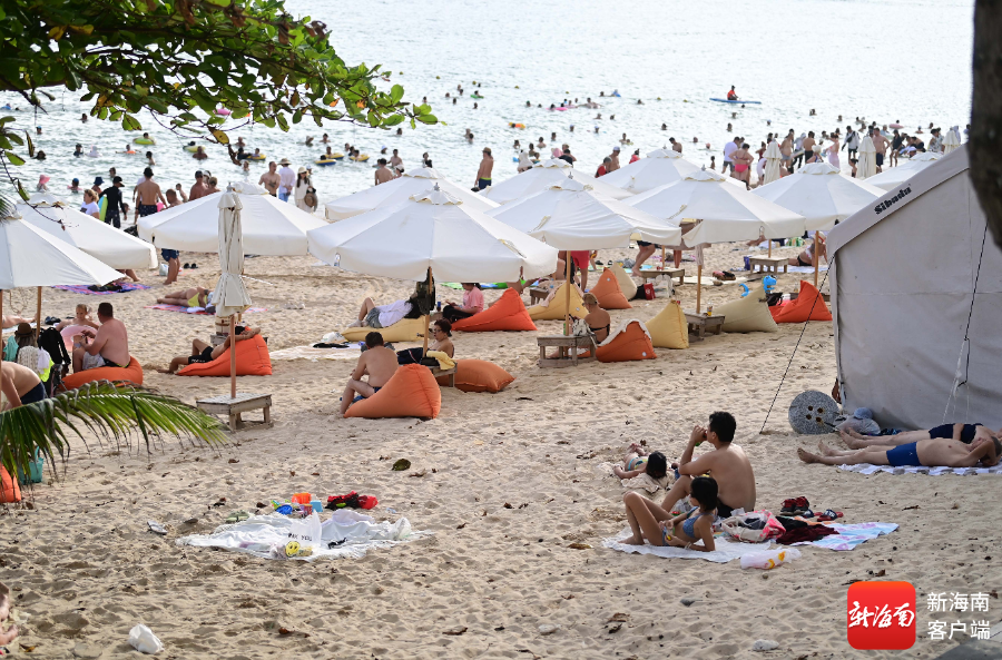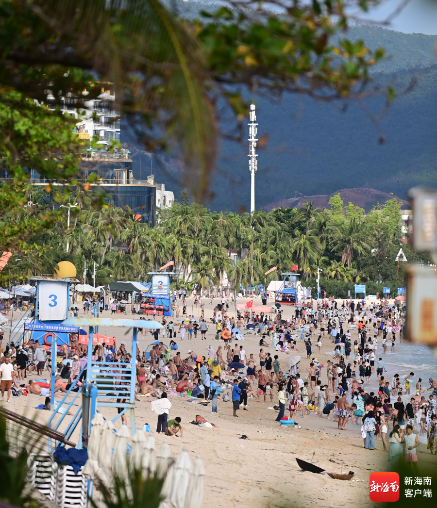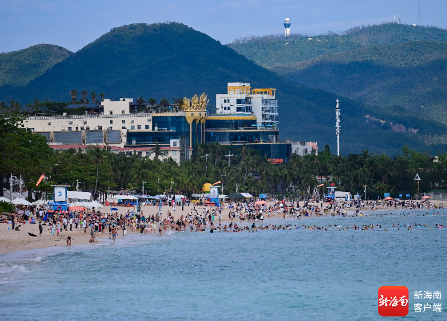 10月8日,在三亚市大东海景区,市民和游客在海滩戏水。国庆中秋假期进入尾声,三亚旅游市场热度不减,各景区人气兴旺,假日经济活力十足,众多国内外游客在碧海蓝天间乐享惬意假期。