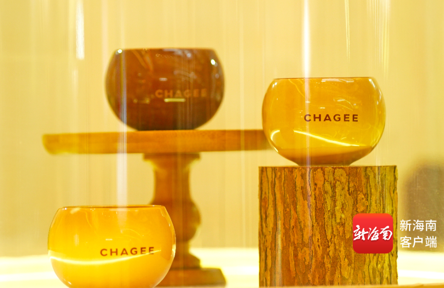 海南椰雕和霸王茶姬合作打造的茶具。记者汪承贤摄