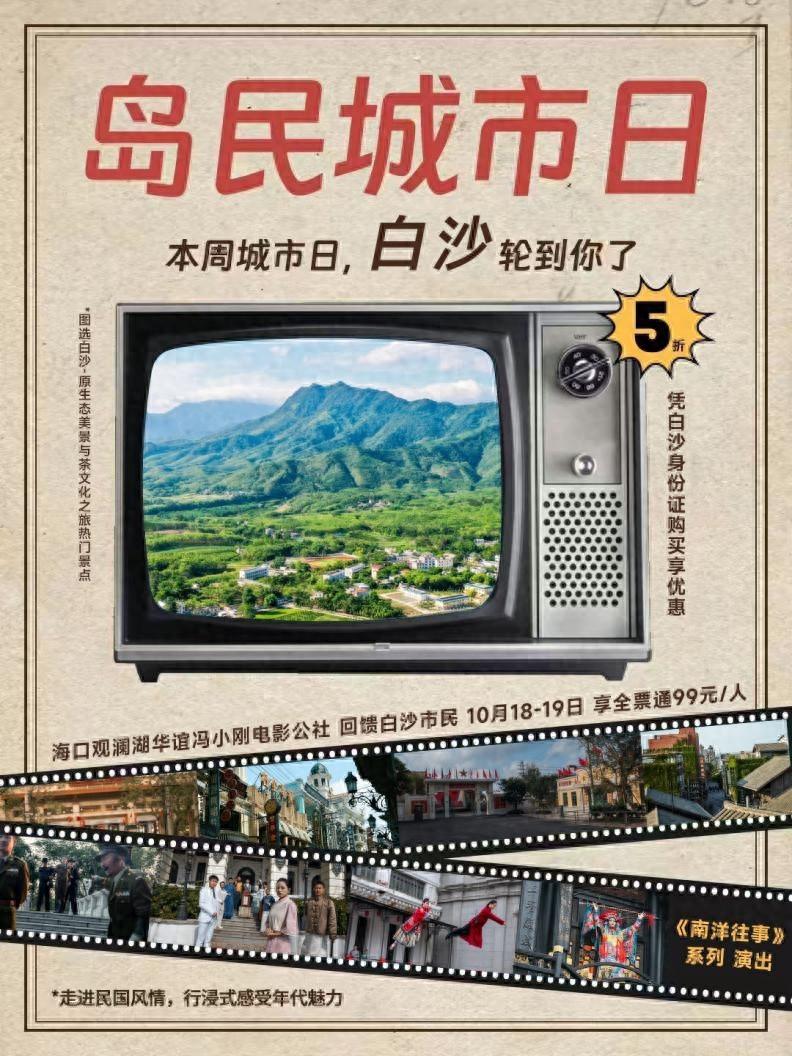 继首轮城市日活动成功举办并收获市民游客热烈反响后,观澜湖华谊冯小刚电影公社再度启动“城市日”惠民活动。10月18日至19日,白沙市民凭本人身份证即可享受电影公社全票通5折特惠,以99元超值价格畅游江城谣·芳华、南洋潮、东方红三大主题景区(原价198元/人),沉浸式体验百年文化风情与电影艺术的完美交融。