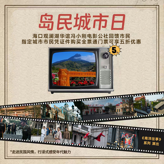 继首轮城市日活动成功举办并收获市民游客热烈反响后,观澜湖华谊冯小刚电影公社再度启动“城市日”惠民活动。10月25日至26日,五指山市民凭本人身份证即可享受电影公社全票通5折特惠,以99元超值价格畅游江城谣·芳华、南洋潮、东方红三大主题景区(原价198元/人),沉浸式体验百年文化风情与电影艺术的完美交融。