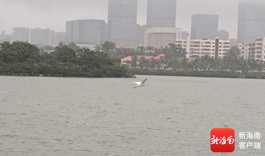 海口红城湖公园内湖心岛上有大量鹭鸟。记者王康景摄