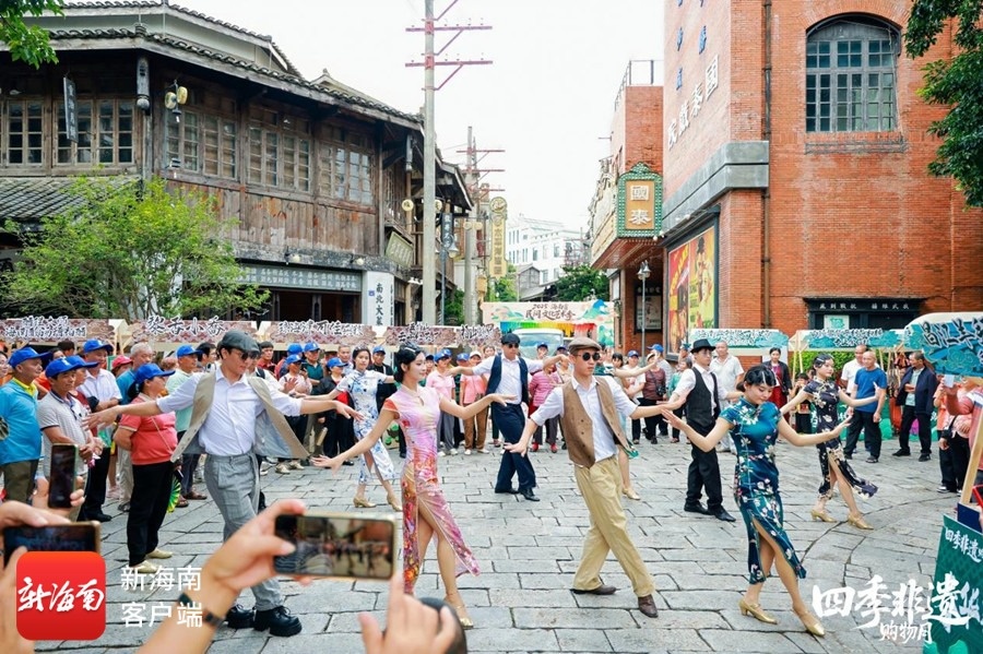 活动期间,海花岛商业街东南亚广场每日将上演两场精彩的“国潮快闪秀”。每场35分钟的演出融合儋州调声、古风歌舞等非遗元素与现代表演形式,《儋州美儋州好》《书香儋州》《桃夭》等节目轮番登场,将为观众带来耳目一新的非遗视听盛宴。