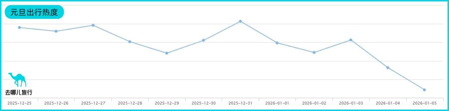 相比于2025年1天的元旦假期,2026年多放2天,不少胆大心细的人选择“请3休8”(即12月29日-31日请假)抢跑出游。从去哪儿旅行的机票预订情况来看,12月27日出发不仅避开了12月31日出游最高峰,而且国内机票平均支付价格也比12月31便宜近百元。