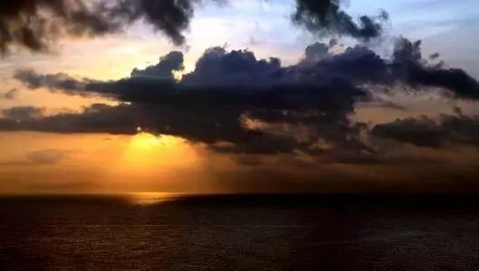 晴天的日出有蔚蓝大海和橘黄色,形成这片不定时的限量渐变色天空。