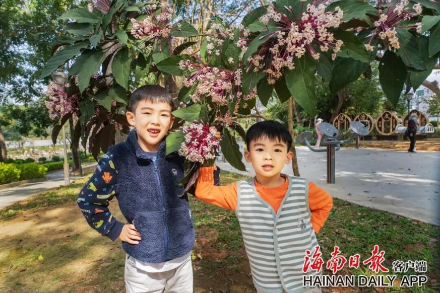 2026年1月6日,五指山小岛公园内的烟火树迎来盛花期,粉红花序如烟火般绽放在翠绿枝叶间,成为五指山冬日里的一抹亮色,吸引市民游客驻足打卡。