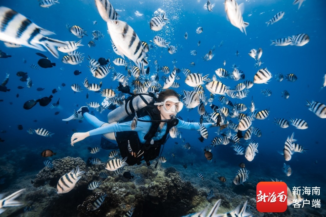 游客在三亚蜈支洲岛旅游区体验潜水。三亚蜈支洲岛旅游区供图