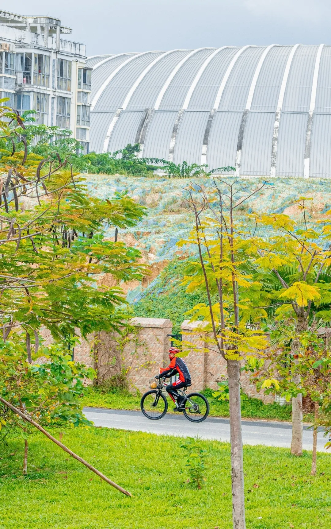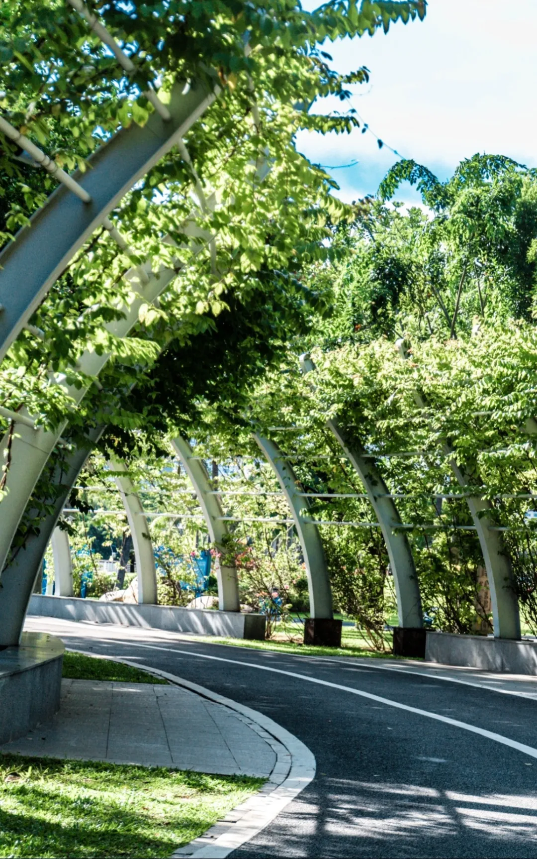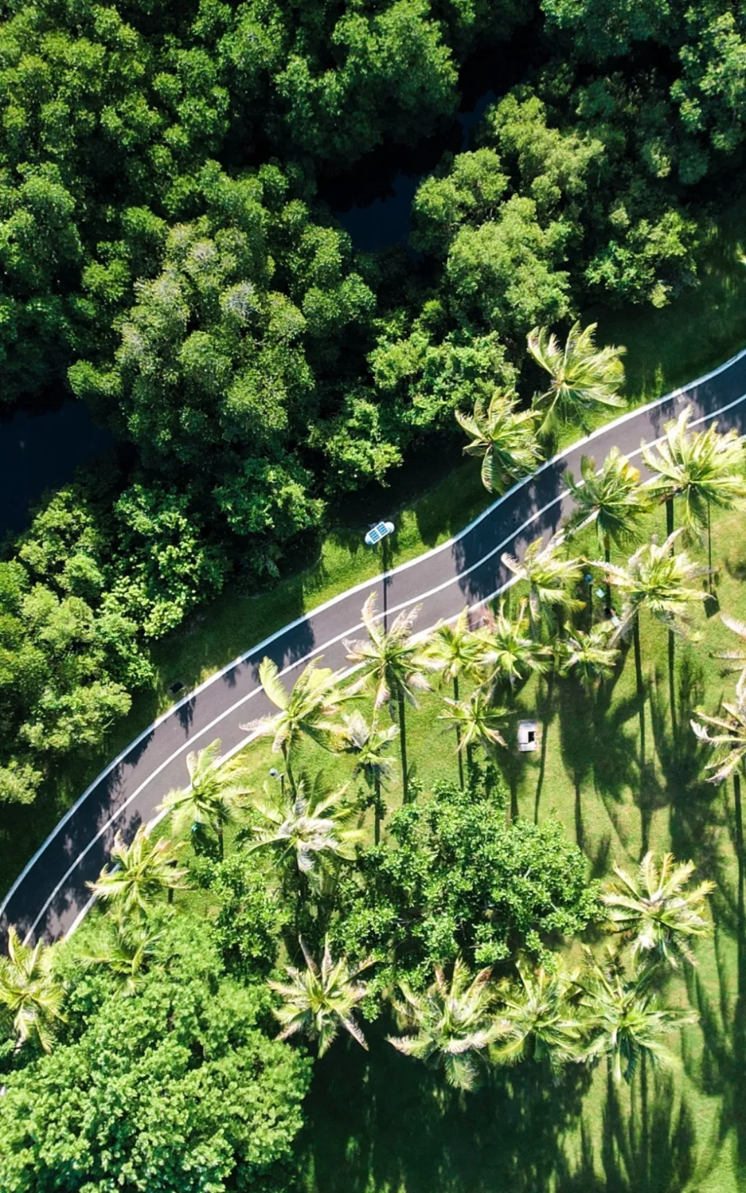 ◎推荐路线:公园东门→沿河骑行道→中心广场→椰林小道→返回东门