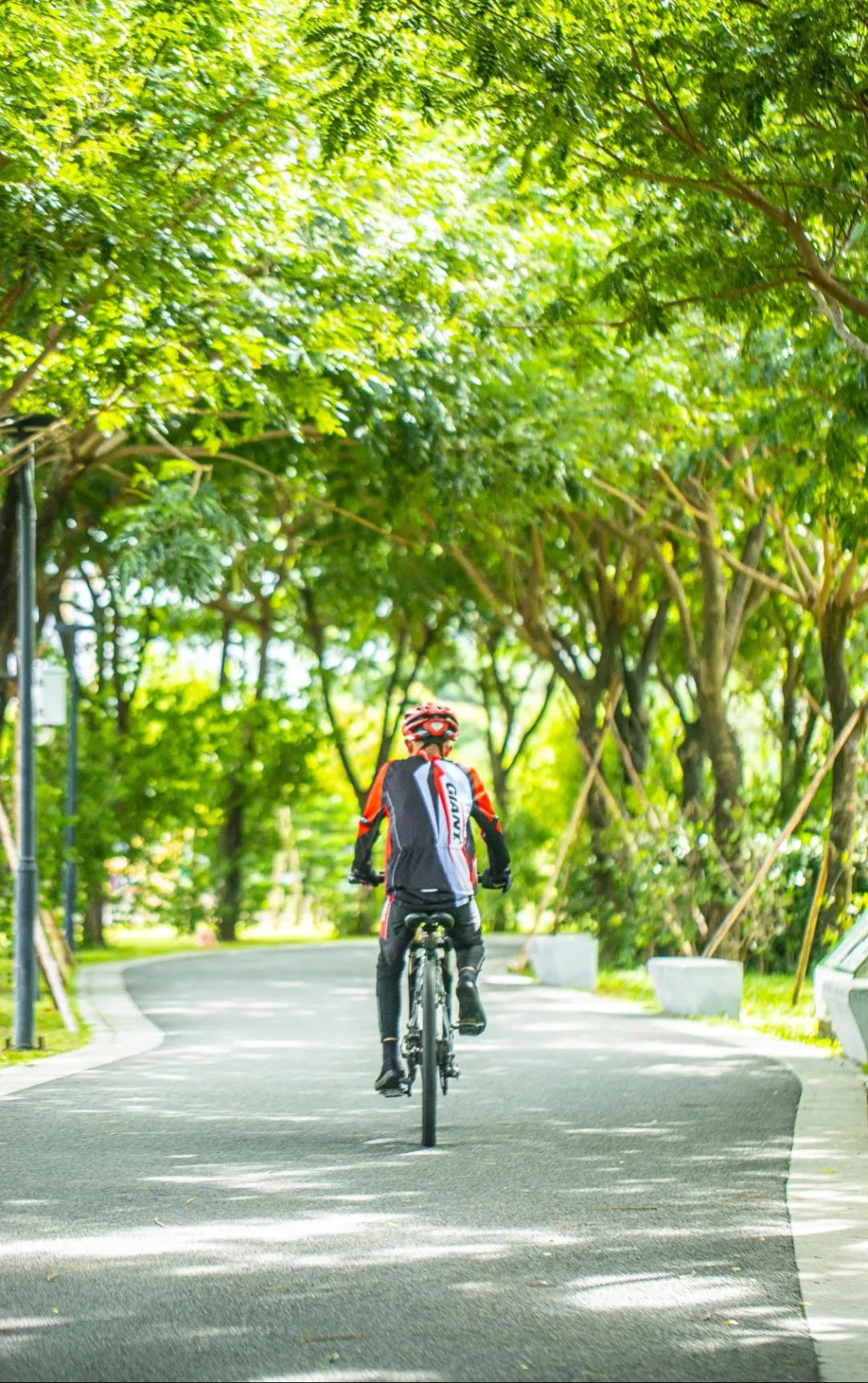车轮碾过蜿蜒的绿道