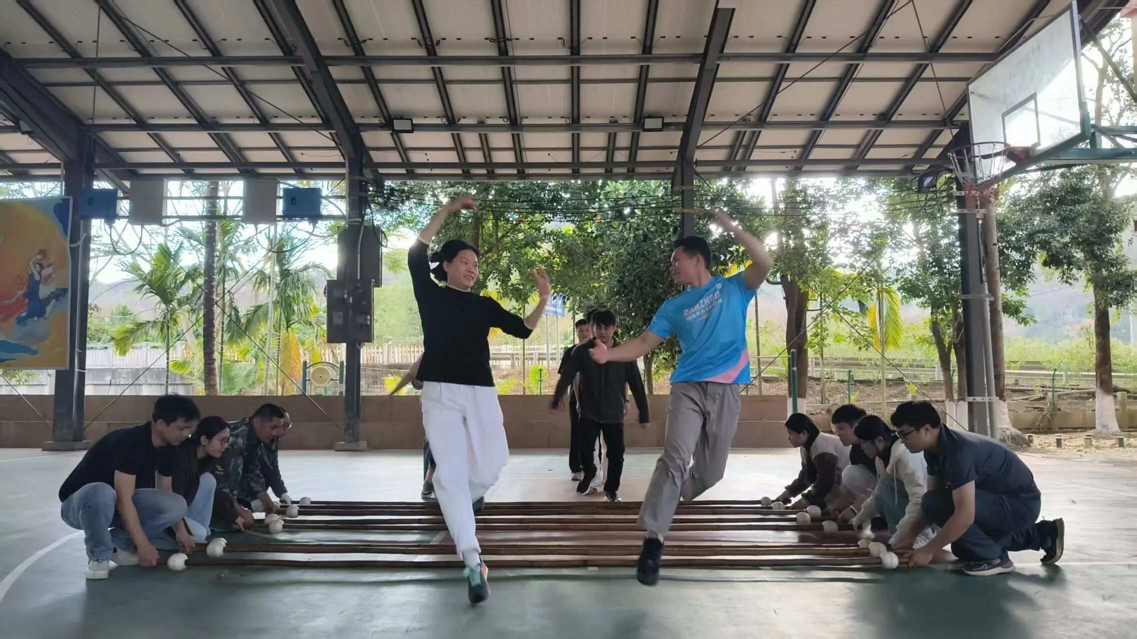 舂米舞与舂米体验:在竹竿舞区旁,先进行一段欢快的“舂米舞”表演。随后前往体验区,亲手体验舂米,传递祝福。