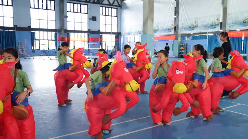 本届“亲加奔·村晚”围绕“奔向幸福、奔向绿色、奔向丰收、奔向开放、奔向未来”的整体结构展开,通过篇章式编排层层推进,将马年昂扬奋进的精神气质贯穿始终。序章节目以迎春贺岁为情绪起点,开场歌舞《骏马驮春到万家》在排练中展现出鲜明的节庆氛围,节奏明快、画面热烈,寓意新春到来、福气进门,为整台晚会迅速聚拢人气、点燃氛围。