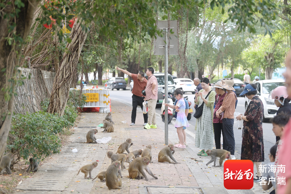 2月17日,人们在三亚南边海路看猴。记者沙晓峰摄