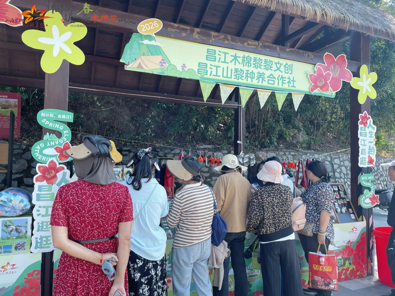 特色文创市集汇聚了以木棉元素为主题的各类文创产品,从木棉花纹书签到黎族图腾帆布包,从手工银饰到椰雕摆件,吸引众多游客驻足选购,将这份可感可知的“昌江记忆”随身带走。