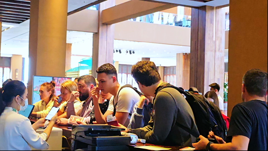 以国际化服务适配多元需求,是运动员村筹备的核心要义。三亚湾红树林前厅服务全面升级金融与语言双保障,不仅配置支持外卡支付的智能终端,增设外币兑换窗口,让跨境支付便捷安全;更组建专业多语种服务团队,英语、日语、韩语等语种全覆盖,搭配红树林百名翻译官队伍与智能翻译工具,为参赛运动员搭建起无障碍沟通桥梁,让每一次咨询、每一次办理都高效顺畅,尽显自贸港的国际化服务水准。