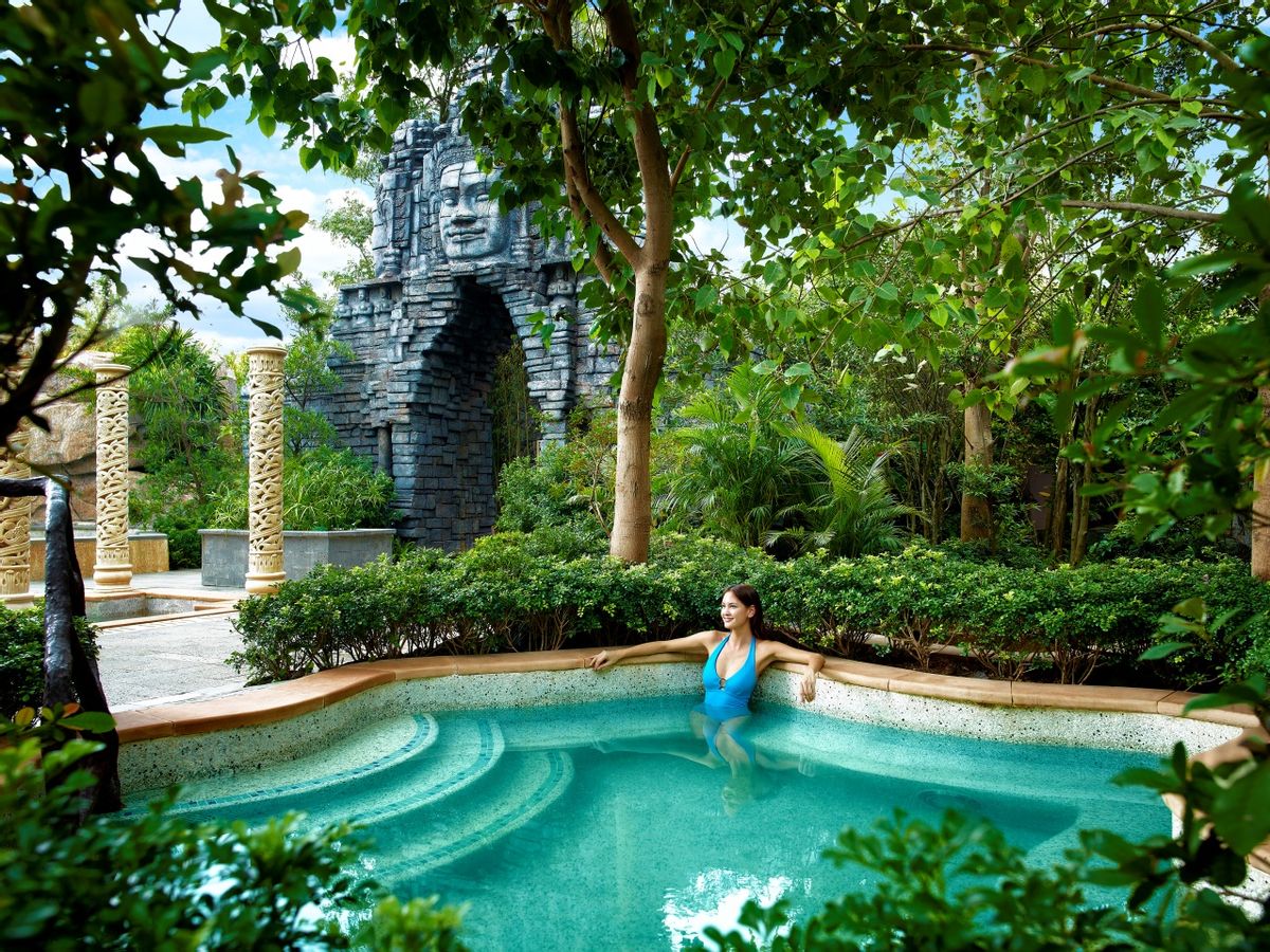 玩得尽兴,也要住得舒心。作为整个度假区的休憩核心,坐拥在广袤绿野中的海口观澜湖度假酒店,早就精心准备了水上透心凉的假日好礼。这里有荣膺吉尼斯世界纪录的火山岩矿温泉,建筑风格横跨五大洲,168个冷热汤池与流水景观散布在幽静的绿荫之中,浸泡在天然火山岩温泉里,是舒缓筋骨、褪去行程疲惫的至佳方式。更让小朋友们雀跃的是,酒店配套的2,200平方米水上乐园还特别建造了人造沙滩与户外泳池,夏日冲浪池此起彼伏,这是给所有年龄段的玩水邀请函——不设限,只管欢笑。酒店还提供完备的一站式吃住行服务,从品质餐厅到亲子设施一应俱全。