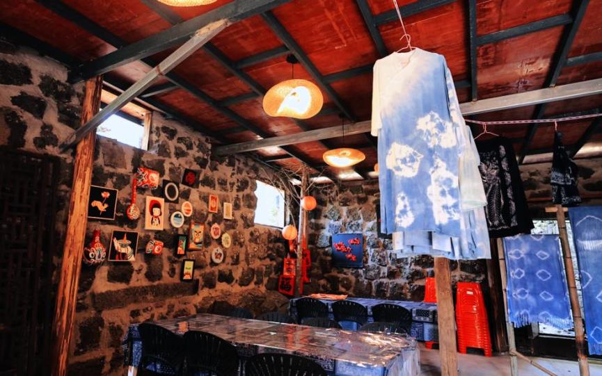 沿着火山石铺成的乡间小道,来到“春风十里非遗小院”这方天地,处处能感受到非遗文化的魅力。