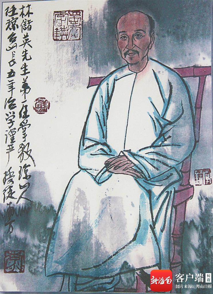 林储英是琼台书院的首任掌教。图为琼台书院博物馆里张挂的林储英画像。陈耿摄